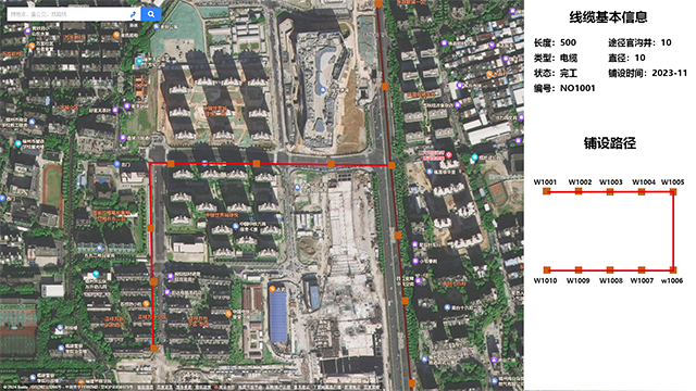 - 线缆管理页面,可以在管井管理页面或者地图中选择线缆。右侧显示线缆的基本信息、施工信息、维护历史等
